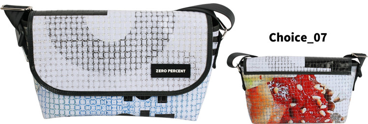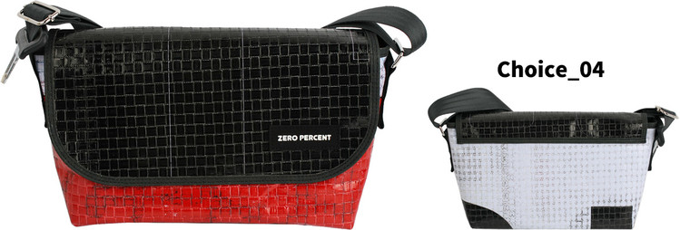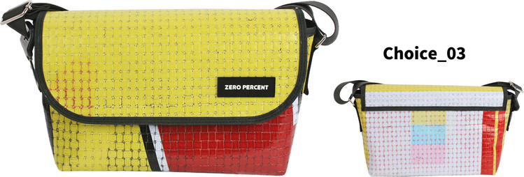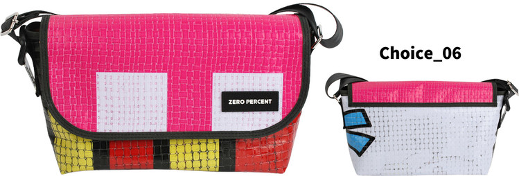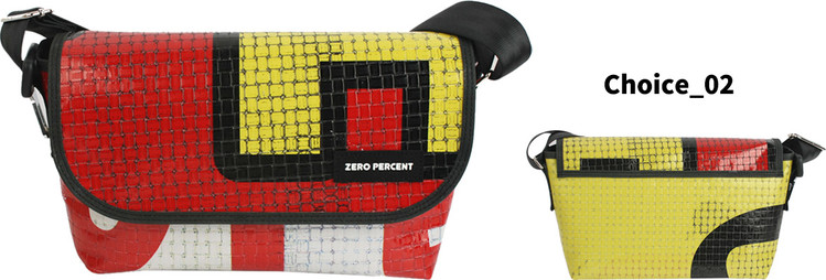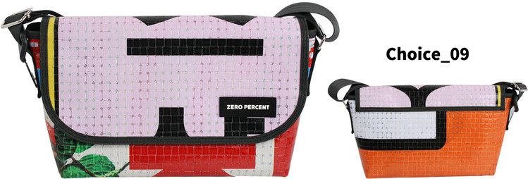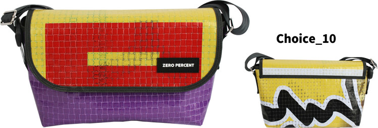 Zero Percent는 식물소재 그리고 폐자원 [간판방수천, 자동차 안전벨트, 현수막, 어닝천막, 자투리, 가죽, 각종재고 등] 과 같은 재활용 소재를 활용합니다.